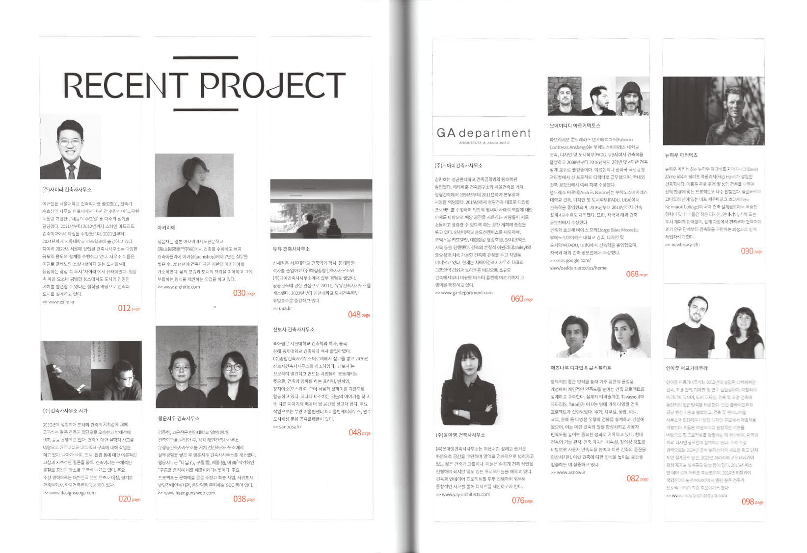 2024. 12 월간 <건축문화> vol.523 RECENT PROJECT Urban Lining -KN GLOBAL Headquarters (주)케이엔글로벌 사옥 pp. 12 - 19 공유하기 게시글 관리 건축가 이규빈 | (주)자이라건축사사무소 저작자표시 (새창열림) 2025. 1 월간 <건축사> vol.669 2025. 1 월간 <전원주택 라이프> vol.310 2024. 12 월간 <전원속의 내집> vol.310 2021. 12 월간 <행복이 가득한 집> vol.412