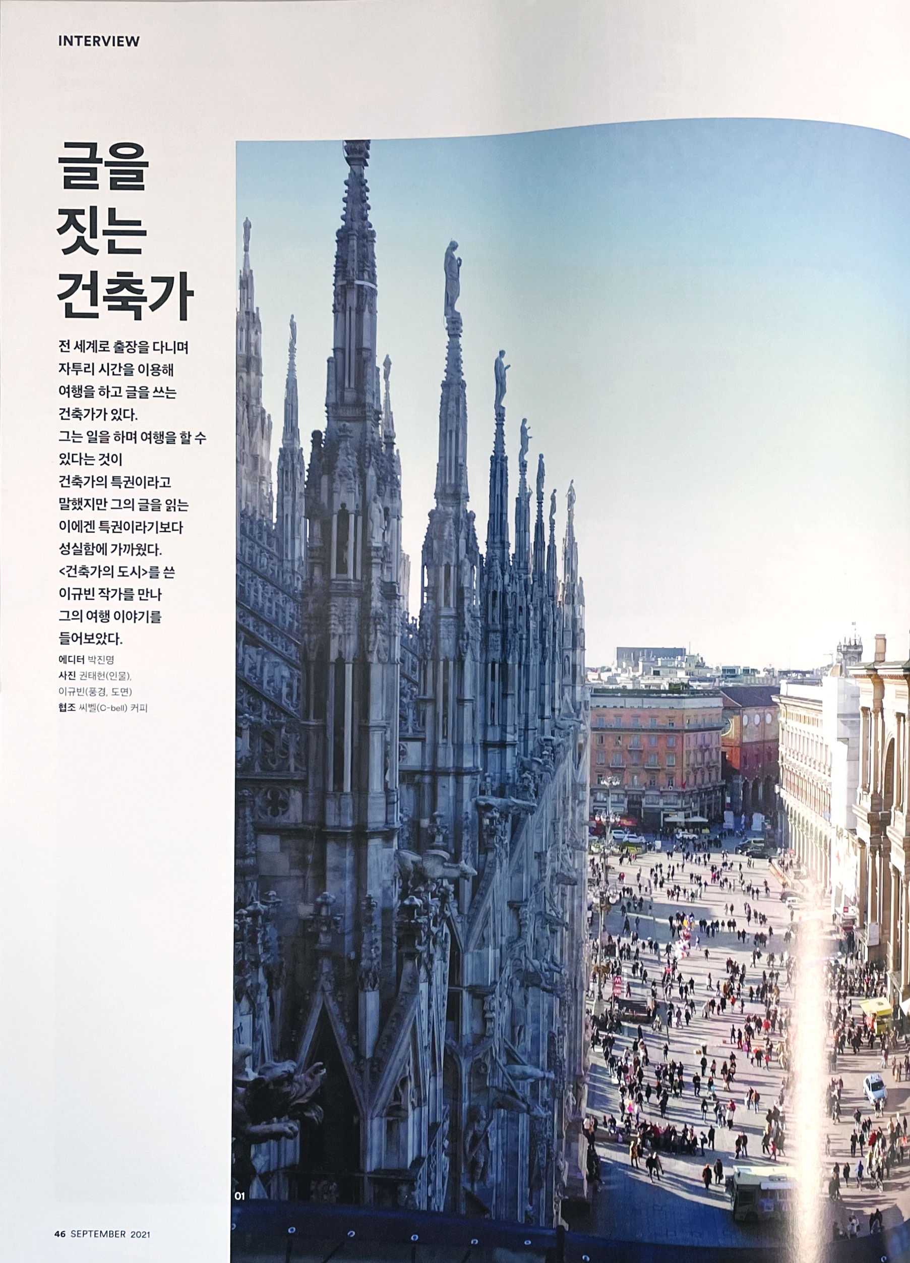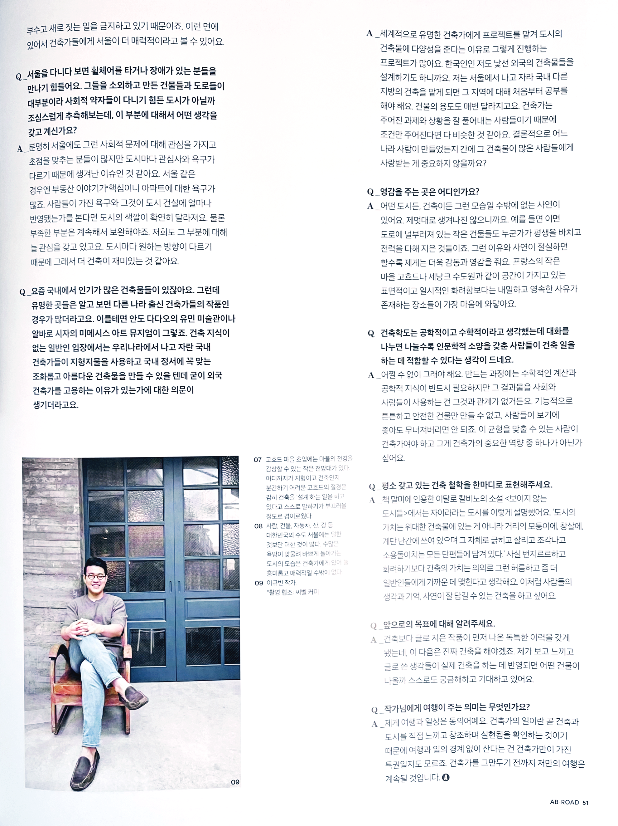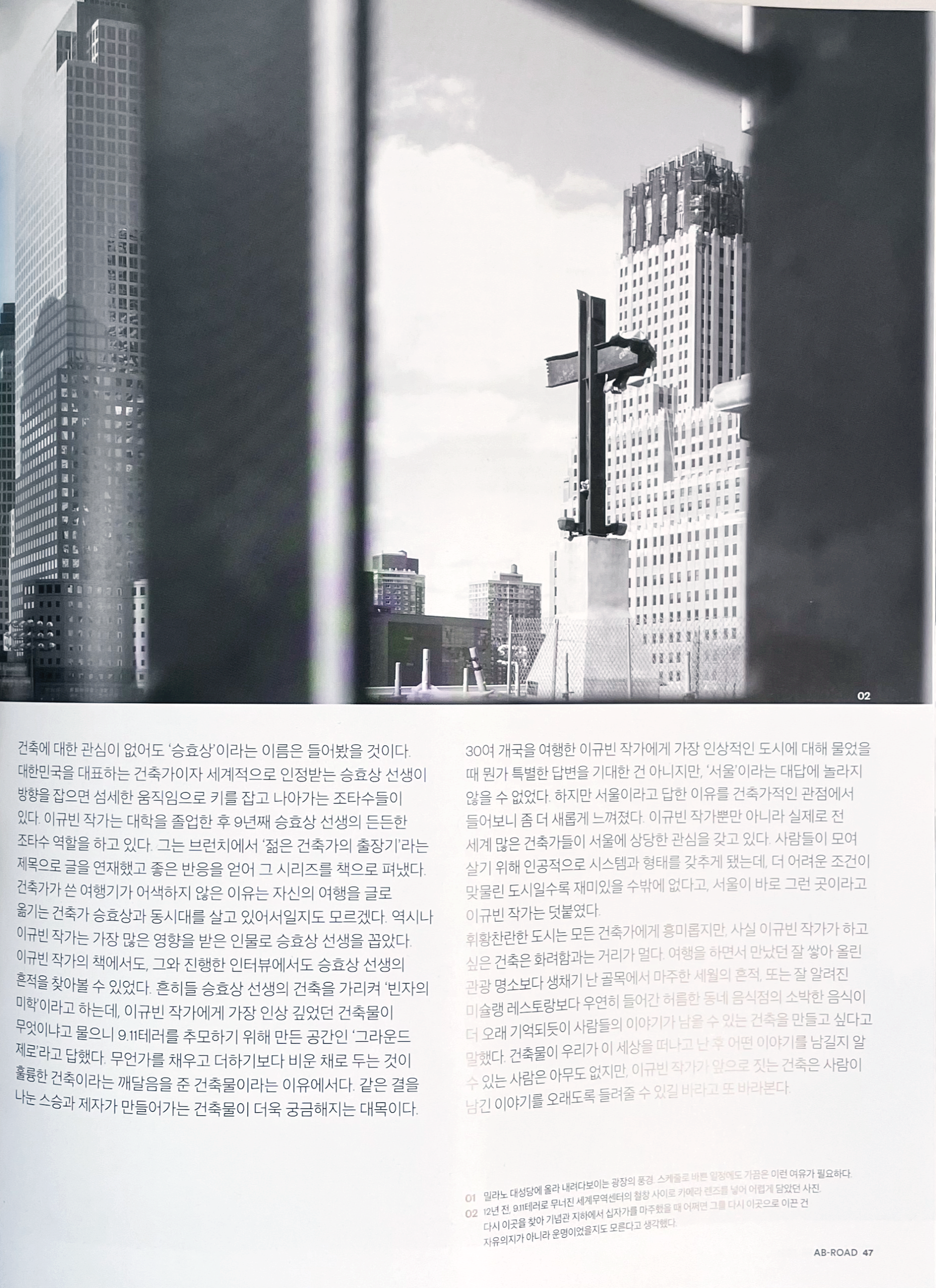 2021. 9 월간 <AB-ROAD> vol.252 INTERVIEW 글을 짓는 건축가 pp. 46 - 51 공유하기 게시글 관리 건축가 이규빈 | (주)자이라건축사사무소 저작자표시 (새창열림) 2025. 1 월간 <전원주택 라이프> vol.310 2024. 12 월간 <건축문화> vol.523 2024. 12 월간 <전원속의 내집> vol.310 2021. 12 월간 <행복이 가득한 집> vol.412